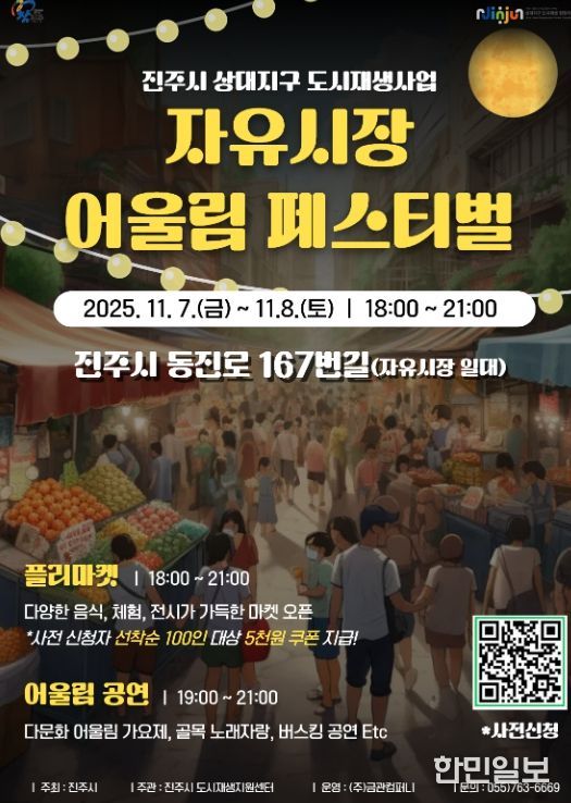 한민일보 서울포커스 김은금 기자 | 진주시는 7일과 8일 이틀간 상대지구 도시재생사업의 일환으로 추진되는 ‘자유시장 어울림 페스티벌'을 개최한다고 밝혔다.