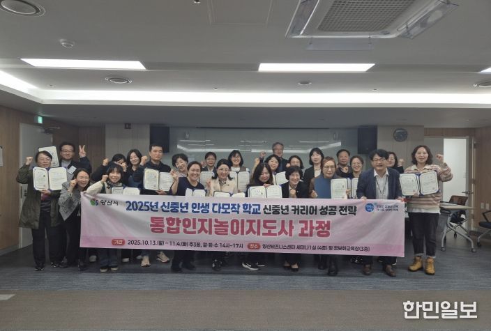 한민일보 서울포커스 김은금 기자 | 양산시는 지난 11월 4일 양산비즈니스센터에서 4층 세미나1실에서‘신중년 인생 다모작학교’ 수료식 및 통합인지놀이지도사2급 자격증 수여식을 가졌다.