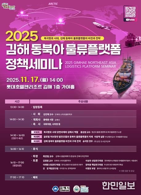 한민일보 서울포커스 김은금 기자 | 김해시는 인제대학교와 함께 오는 17일 오후 2시부터 롯데호텔앤리조트 김해 1층 가야홀에서 ‘북극항로 시대, 김해 동북아 물류플랫폼의 비전과 전략’을 주제로 정책 세미나를 개최한다고 6일 밝혔다.