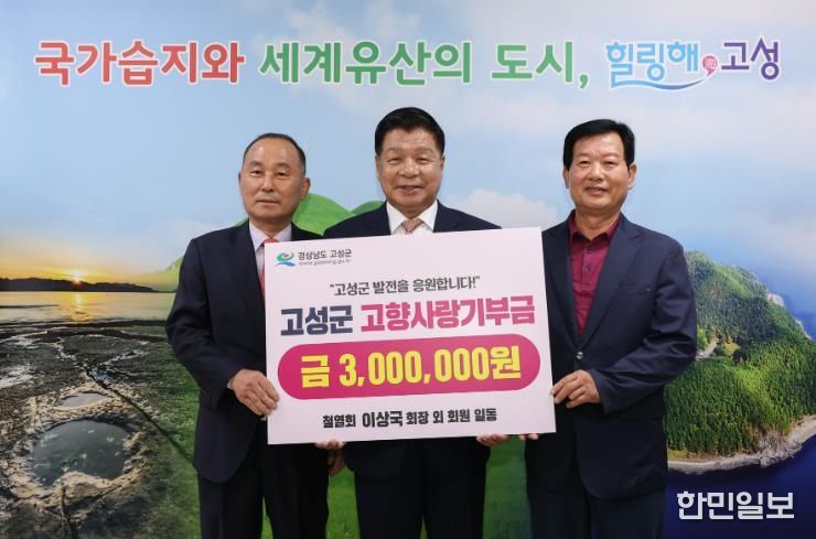 한민일보 서울포커스 김은금 기자 | 고성군은 11월 7일, 철열회(부산, 창원 거주 철성고 10회 졸업생 모임) 이상국 회장 외 회원 일동이 고향사랑기부금 300만 원을 기탁했다고 밝혔다.