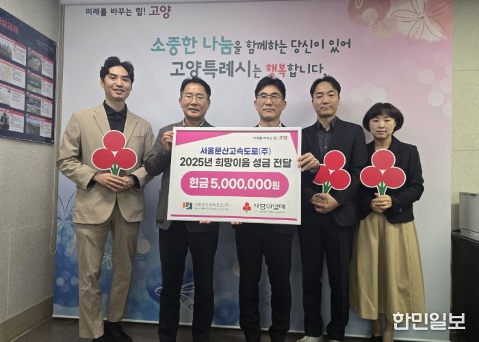 한민일보 서울포커스 김은금 기자 | 고양특례시는 지난 11일 서울문산고속도로(주)에서 어려운 이웃을 위한 성금 500만원을 기탁했다고 밝혔다.