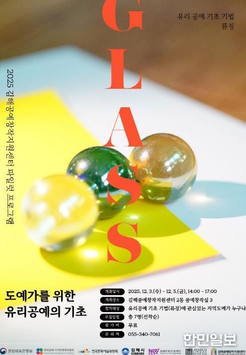 한민일보 서울포커스 김은금 기자 | (재)김해문화관광재단 김해공예창작지원센터는 오는 11월 17일부터 『도예가를 위한 유리공예의 기초』 교육 참가자를 모집한다.