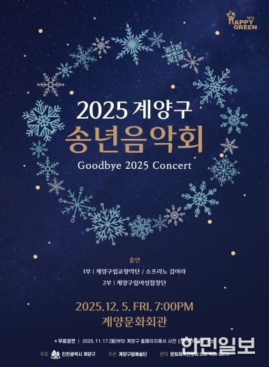 이번 음악회는 단순한 공연을 넘어, 한 해를 함께 보낸 주민들이 서로를 응원하고 마음을 나누는 소중한 자리로 마련됐다. 겨울밤을 은은하게 밝혀줄 아름다운 멜로디와 따뜻한 위로가 함께하는 시간으로, 계양 주민이라면 놓치기 아까운 특별한 연말 선물이 될 것이다.