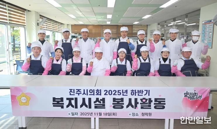 한민일보 서울포커스 김은금 기자 | 진주시의회는 18일, 2025년 하반기 복지시설 봉사활동의 일환으로 청락원 경로식당을 방문해 급식 봉사활동을 펼쳤다.