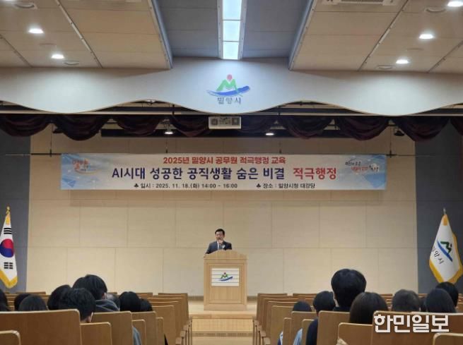 한민일보 서울포커스 김은금 기자 | 경남 밀양시는 18일 시청 대강당에서 적극행정 분위기 확산과 공직자 역량 강화를 위한 ‘2025년 밀양시 공무원 적극행정 교육’을 실시했다.