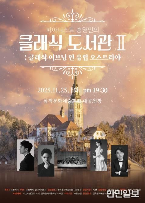 한민일보 서울포커스 임경복 기자 | 삼척시는 세계적인 오스트리아 작곡가들의 명곡을 감상할 수 있는 기획공연 ‘클래식 도서관 시즌2 – 클래식 이브닝 인 유럽 오스트리아’를 오는 11월 25일 오후 7시 30분, 삼척문화예술회관 대공연장에서 개최한다.