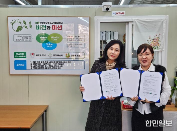 한민일보 서울포커스 김은금 기자 | (재)김해시복지재단 김해시서부노인종합복지관장은 (사)경남환경교육문화센터(대표 박효원)와 생태, 환경교육 및 다양한 프로그램 개발을 위해 지난 18일 업무협약을 체결했다.