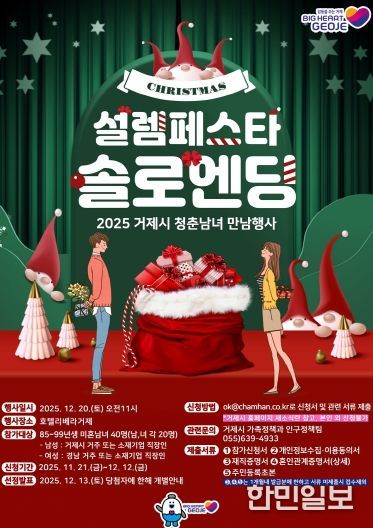거제시는 “연말 감성을 담아 청년들이 부담 없이 교류할 수 있는 자리가 되도록 세밀하게 준비 중”이라며, “이번 행사가 새로운 인연을 찾는 기회가 되고, 지역사회에도 긍정적인 활기를 더하길 바란다”고 말했다.