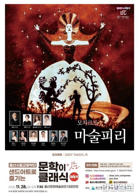 한민일보 서울포커스 임경복 기자 | 울산시립교향악단이 11월 28일 오후 7시 30분 울산문화예술회관 대공연장에서 ‘샌드아트로 즐기는 문학이 잇는 클래식 제4막_마술피리’를 선보인다.