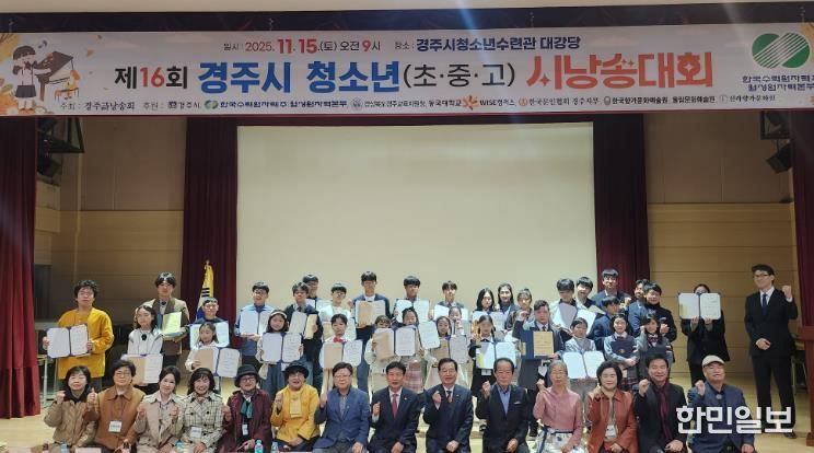 한민일보 서울포커스 김봉순 기자 | 경주시는 지난 15일 청소년수련관에서 열린 ‘제16회 경주시 청소년 시낭송대회’가 성황리에 마무리됐다고 밝혔다.