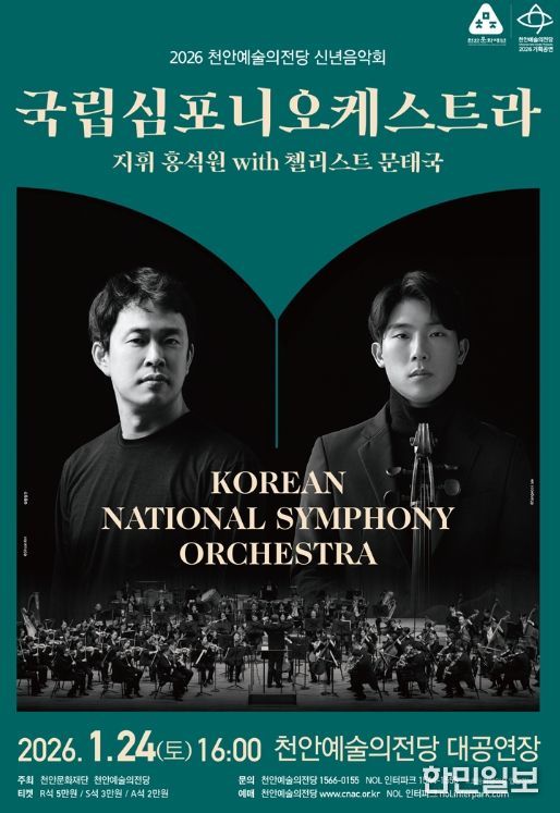 한민일보 서울포커스 황준형 기자 | 천안문화재단은 내년 1월 24일 천안예술의전당 대공연장에서 ‘국립심포니오케스트라 with 지휘 홍석원, 협연 첼리스트 문태국’ 신년 음악회를 개최한다고 밝혔다.