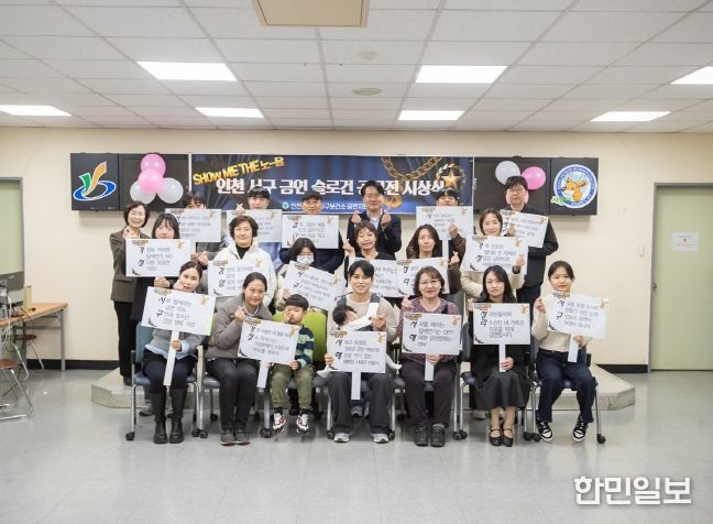 한민일보 서울포커스 김용택 기자 | 인천 서구는 지난 19일 서구보건소에서 인천 서구 금연 슬로건 공모전 ‘SHOW ME THE 노담’의 시상식을 개최했다.