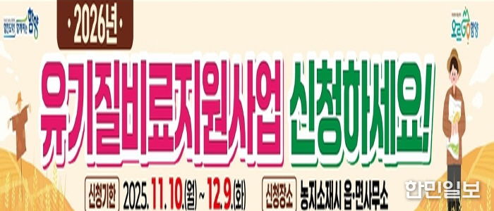 한민일보 서울포커스 김서윤 기자 | 함양군은 친환경농업 기반을 강화하고, 토양 비옥도를 증진해 지속 가능한 농업환경을 조성하기 위해 ‘2026년 유기질비료 지원사업’ 신청을 오는 12월 9일까지 접수한다.