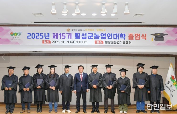한민일보 서울포커스 진광성 기자 | 횡성군농업인대학은 21일 횡성군농업기술센터에서 ‘2025년 제15기 횡성군농업인대학 졸업식’을 진행했다.