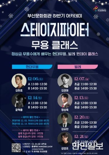 한민일보 서울포커스 임광현 기자 | (재)부산문화회관은 최근 다양한 문화 콘텐츠와 공연 활동을 통해 시민들의 무용에 대한 관심과 학습 수요가 꾸준히 증가하고 있는 흐름에 발맞춰, 오는 12월 무용 원데이 클래스 강좌를 마련한다.