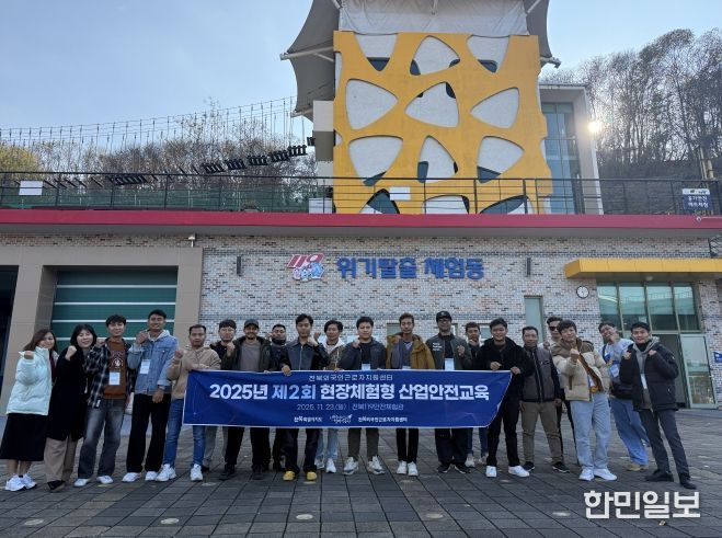 한민일보 서울포커스 박용남 기자 | 전북외국인근로자지원센터는 최근 증가하는 산업재해 발생에 대응하고 안전 취약계층인 외국인 근로자의 안전 확보를 위해 지난 11월 23일(일요일) 외국인 근로자 40명을 대상으로 ‘2025년 제2회 체험형 산업안전 교육’을 실시했다고 밝혔다. 이번 교육에는 제조업·건설업 등 재해 다발 업종에 근무하는 외국인 근로자들이 대거 참여했다.