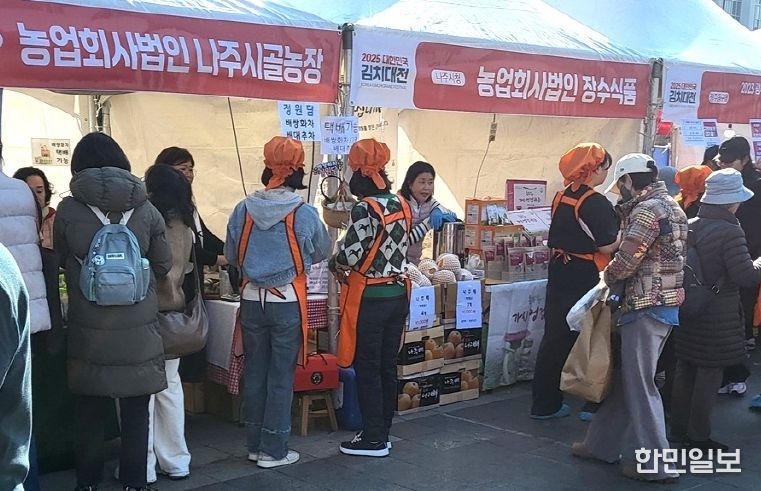 한민일보 서울포커스 임광현 기자 | 전라남도 나주시는 ‘김치의 날’인 지난 22일 광주 5․18 민주 광장에서 개최된 ‘2025 대한민국 김치대전’에 참가해 나주시 인기 농특산물 홍보 및 판촉 행사를 가졌다고 밝혔다.