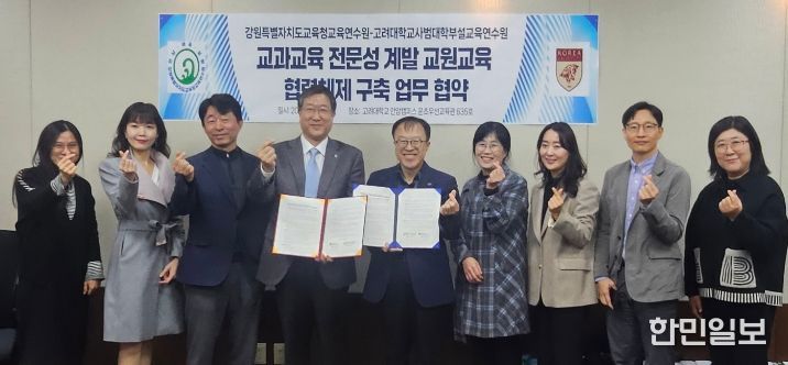 한민일보 서울포커스 곽중희 기자 | 강원특별자치도교육청교육연수원은 24일 고려대학교 사범대학 부설 교육연수원과 ‘교과교육 전문성 계발 교원교육 협력체제 구축’을 목표로 업무협약을 체결했다.