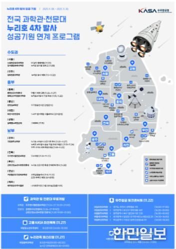 ‘누리호 4차 발사’ 성공 기원 과학행사 참가비는 무료이며, 선착순 2백 명에게는 우주항공청에서 ‘우주인 키링’을 제공할 예정이다.