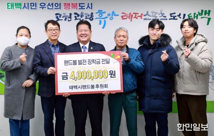 한민일보 서울포커스 임경복 기자 | 태백시는 태백시핸드볼후원회(회장 우병선)가 지역 핸드볼 꿈나무 육성을 위해 총 400만 원 규모의 핸드볼 발전 장학금을 관내 4개 학교(황지초등학교, 세연중학교, 황지정보산업고등학교, 철암고등학교)에 전달했다고 밝혔다.