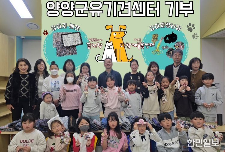 한민일보 서울포커스 진광성 기자 | 양양군 다함께돌봄센터 소속 아동 16명은 지난 11월 25일, 양양군 농업기술센터 농정축산과를 통해 양양 유기견보호센터에 직접 만든 강아지매트 20점과 강아지 장난감 35점을 전달했다.