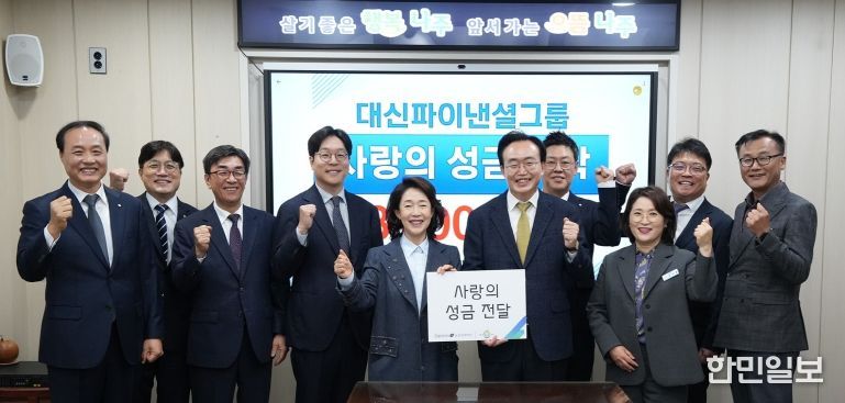 한민일보 서울포커스 임광현 기자 | 대신파이낸셜그룹이 지역 취약계층과 복지시설 지원을 위한 성금을 나주시에 전달하며 창업주 양재봉 회장의 고향 나주와 이어온 19년간의 사회 환원을 올해도 이어갔다.