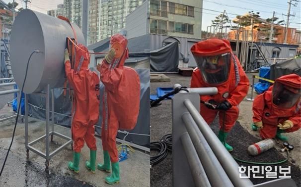 주요 훈련 내용은 ▲화학사고 대응 이론 및 안전관리 교육 ▲화학사고 대응키트를 활용한 누출 차단 실습 ▲유해화학물질 성상 파악 및 초기 제독 조치 ▲A·C급 화학보호복 착·탈의 숙달 ▲누출 현장 위험 요소 분석 및 주변 확산 통제 등이다.