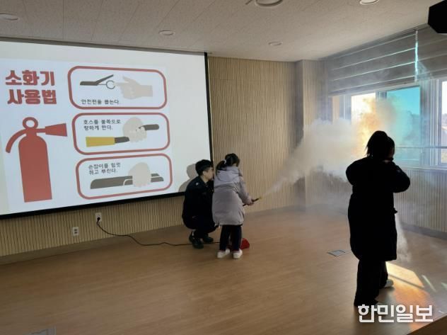 교육은 화재 발생 시 올바른 대피 방법을 익히는 데 중점을 두고 진행됐다. 학생들은 화재를 인지했을 때의 행동 요령, 연기 속에서의 대피 자세, 대피 시 반드시 지켜야 할 ‘절대 금지 행동’ 등 실제 상황에 바로 적용 가능한 내용을 체험 중심으로 배웠다. 또한 소방대원이 직접 시연하며 소화기 사용법을 설명한 후, 학생들이 일대일로 조작해 보는 실습도 이어졌다. 이를 통해 어린이들이 비상 상황에서 소화기를 두려움 없이 사용할 수 있도록 했다.