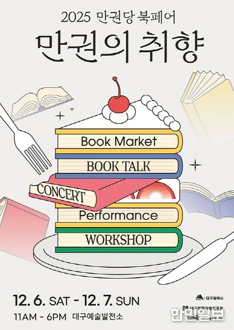 한민일보 서울포커스 김봉순 기자 | 대구문화예술진흥원 문화예술본부는 2025 만권당 북페어 ‘만권의 취향’을 오는 12월 6일부터 7일까지 대구예술발전소에서 개최한다.