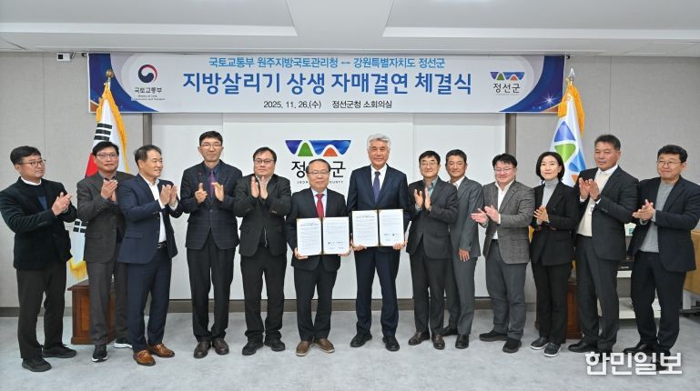 한민일보 서울포커스 진광성 기자 | 정선군은 11월 26일 정선군청에서 국토교통부 원주지방국토관리청(청장 이동민)과 ‘지방살리기 상생 자매결연 업무협약’을 체결했다고 밝혔다.