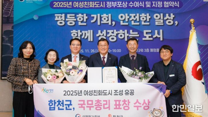 한민일보 서울포커스 김은금 기자 | 합천군은 26일 성평등가족부가 주관한 ‘2025년 여성친화도시 정부포상 수여식’에서 경남 지역 유일하게 국무총리 표창을 수상했다. 2023년 11월 여성친화도시로 지정된 후 2년만에 이루어낸 쾌거이다.