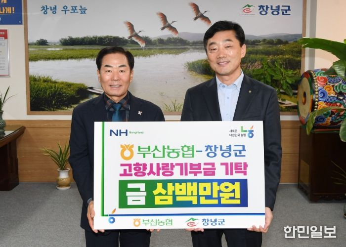 한민일보 서울포커스 김은금 기자 | 창녕군은 지난 26일 부산농협 임직원들이 자발적으로 모금한 고향사랑기부금 3백만 원을 전달받았다고 밝혔다. 이날 기탁식에는 농협중앙회 이수철 부산본부장, 김정화 부본부장, 신우경 창녕군지부장이 참석했다.