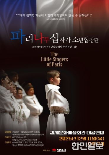 한민일보 서울포커스 박용남 기자 | 세계 유일의 아카펠라 소년합창단이자 ‘평화의 사도’로서 세계적으로 널리 알려진 '파리 나무 십자가 소년합창단'이 오는 12월 11일 오후 7시 김제문화예술회관 대공연장에서 펼쳐진다.
