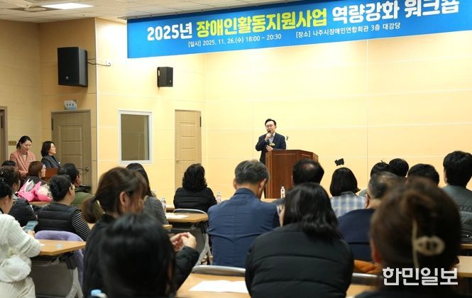 한민일보 서울포커스 임광현 기자 | 전라남도 나주시는 지난 26일 장애인활동지원사업 관계자와 활동지원사 100여 명을 대상으로 ‘장애인활동지원사업 역량 강화 워크숍’을 개최했다고 밝혔다.