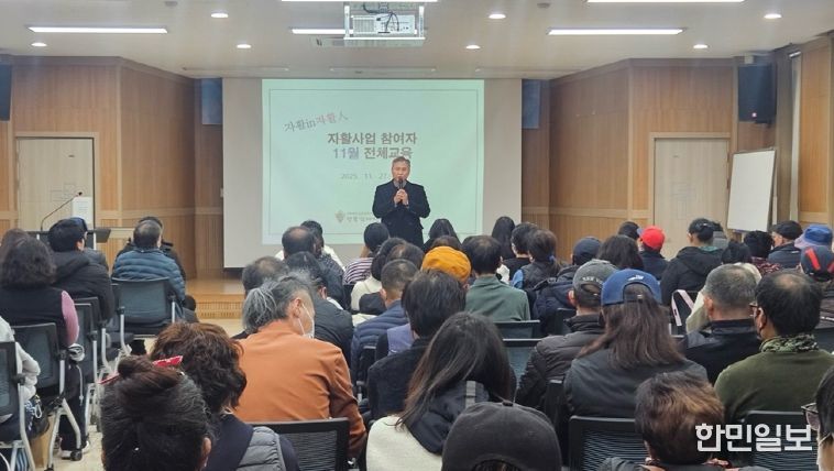 이번 교육은 자활근로사업 참여자들의 자활 의지를 키우고 자립을 위한 경제적·조직적 역량을 높여 사회 적응훈련에 도움을 주고자 마련됐다.
