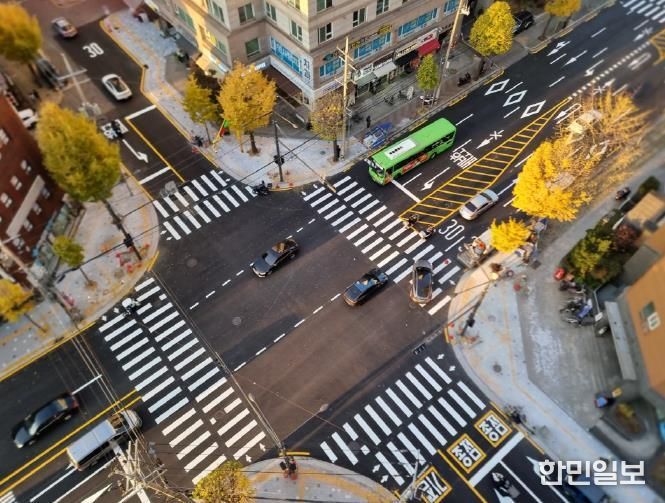 이에 구는 올해 9월 29일부터 공사를 시작해 기존의 ‘ㄷ’자 횡단보도에서 ‘ㅁ’자 횡단보도로 정비했다. 11월 12일에는 동시 보행신호를 개통하고, 이어 21일에는 인근 차도 포장과 보도 정비를 완료했다.