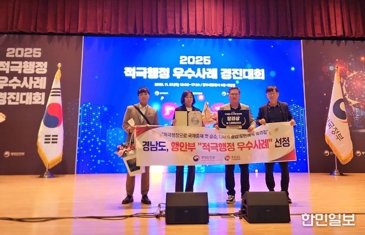 한민일보 서울포커스 박근원 기자 | 경남도가 지난 27일 열린 행정안전부 ‘2025년 적극행정 우수사례 경진대회’에서 ‘적극행정으로 국제중재 첫 승소, 138억 절감 도민에게 돌려줘’ 사례로 기관 표창(인사혁신처장상)을 받았다고 28일 밝혔다.