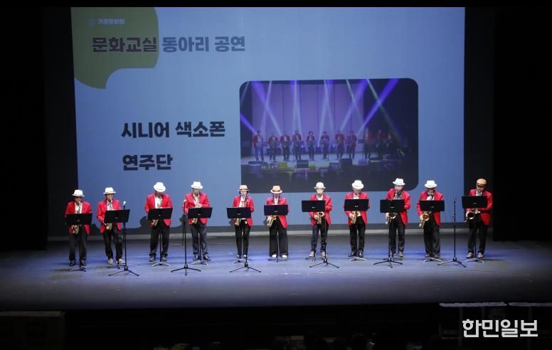 이번 행사는 1부 개회식과 낭만아재밴드의 초청공연, 2부 공연으로 문화교실 수강생의 경기민요, 기타&노래, 남도민요, 농악, 실버합창단, 연극교실, 동아리 단체인 시니어색소폰연주단과 초청공연으로 실버 통기타(거창군 삶의 쉼터), 그라운디(댄스아카데미)가 참가해 실력을 뽐냈다.