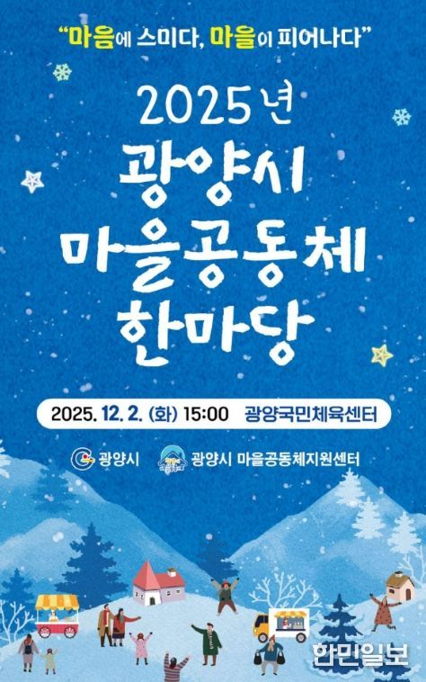 한민일보 서울포커스 임광현 기자 | 광양시는 오는 12월 2일 오후 3시, 광양국민체육센터에서 ‘2025년 광양시 마을공동체 한마당’을 개최한다고 밝혔다.