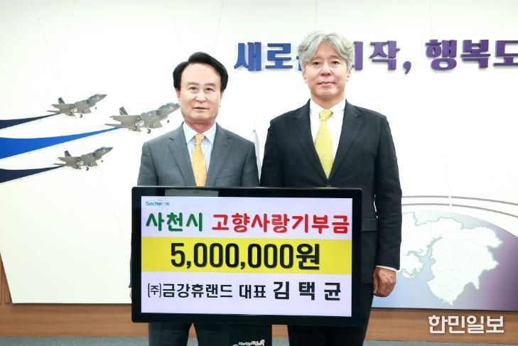 한민일보 서울포커스 김은금 기자 | 사천시는 조경 시설물 제조·설치업체인 (주)금강휴랜드의 김택균 대표가 고향사랑기부금 500만 원을 기부하며, 사천 지역사회 발전에 뜻깊은 나눔을 실천했다고 28일 밝혔다.