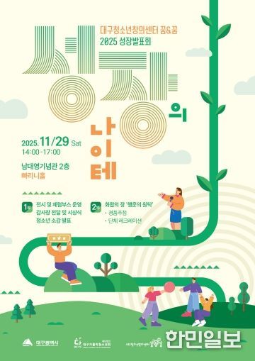 한민일보 서울포커스 김봉순 기자 | 대구광역시는 대구청소년창의센터 꿈&꿈(센터장 김태완)이 11월 29일 오후 2시, 남대영기념관에서 청소년들의 한 해 동안의 성장과 활동 성과를 공유하는 ‘2025년 성장발표회-성장의 나이테’를 개최한다고 밝혔다.