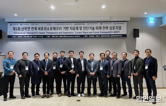 한민일보 서울포커스 김봉순 기자 | 안동시가 후원하고 동물세포실증지원센터가 주최한 '제1회 산학연 연계 세포외소포체(EV) 기반 치료제 및 진단기술 미래 전략 심포지엄'이 11월 28일 안동 스탠포드호텔에서 성황리에 개최됐다.