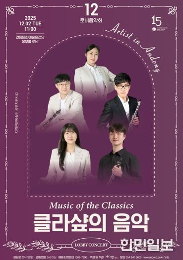 한민일보 서울포커스 김봉순 기자 | 안동문화예술의전당은 지역예술인들에게 다양한 무대 경험을 제공하고, 시민에게는 일상 속 음악 향유할 수 있는 기회를 마련하고자, 매월 첫째 주 화요일 오전 11시에 로비음악회 시리즈를 진행하고 있다. 올해 마지막 로비음악회는 ‘클라샵’의 공연으로 12월 2일 오전 11시, 웅부홀 로비에서 '클라샾의 음악'이라는 제목으로 개최된다.