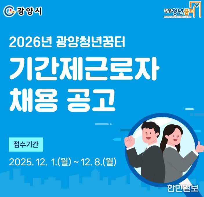 한민일보 서울포커스 임광현 기자 | 광양시는 2026년 한 해 동안 광양청년꿈터 운영을 함께할 기간제근로자 4명을 모집한다고 1일 밝혔다.