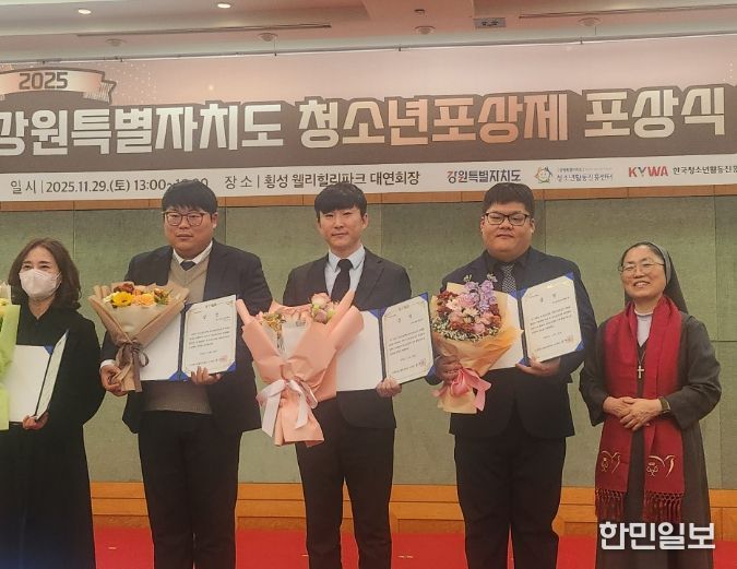 한민일보 서울포커스 진광성 기자 | 정선군이 설립하고 한국청소년연맹이 수탁 운영하는 신동 다함께돌봄센터는 2025년 11월 29일 횡성 웰리힐리파크에서 열린‘강원특별자치도 청소년포상제 포상식’에서 2025년 첫걸음 청소년자기도전포상제 우수활동기관으로 선정돼 한국청소년활동진흥원 이사장상을 수상하고 소속 청소년 23명이 인증서를 수여 받았다.