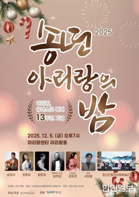 군은 이번 행사를 통해 아리랑의 국제적 위상과 지역 문화의 정체성을 재조명하고, 군민과 함께 따뜻한 연말 분위기를 나누는 의미 있는 시간이 될 것으로 기대하고 있다.