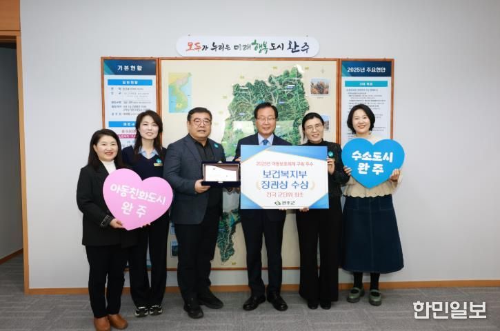 한민일보 서울포커스 박용남 기자 | 완주군이 지난 1일 보건복지부가 주관한 ‘2025년 아동보호체계 구축 우수 지자체 평가’에서 전국 군 단위 최초로 우수기관으로 선정돼 보건복지부 장관상을 수상했다.
