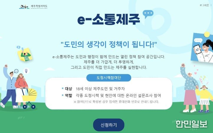 한민일보 서울포커스 임경복 기자 | 제주특별자치도가 도정 주요 시책에 대한 도민 의견을 폭넓게 모으기 위해 온라인 도민참여단을 모집한다.