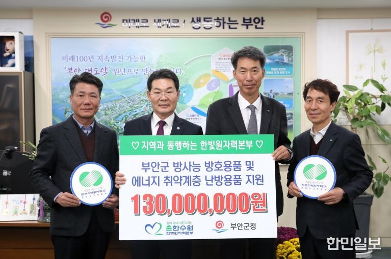 한민일보 서울포커스 김용택 기자 | 부안군은 한국수력원자력(주) 한빛원자력본부가 부안 주민을 위해 1억 3000만원 상당의 물품을 기탁했다고 지난 1일 밝혔다.