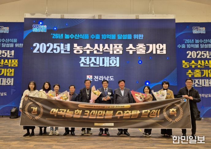 한민일보 서울포커스 박용남 기자 | 전남 곡성군은 지난 11월 28일 남악 스카이웨딩컨벤션에서 열린‘2025년 농수산식품 수출기업 전진대회’에서 관내 소재한 석곡농업협동조합이 30만 불 수출탑을 수상했다고 2일 밝혔다.